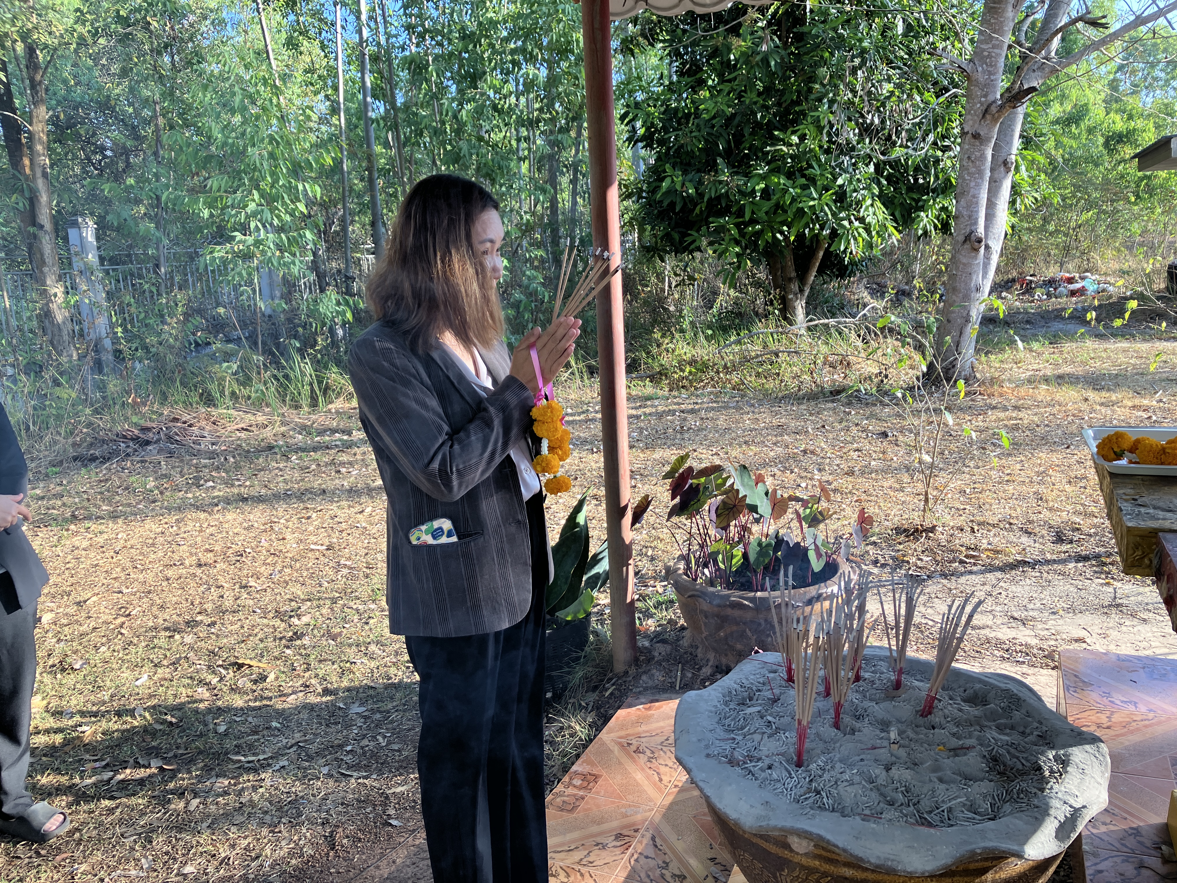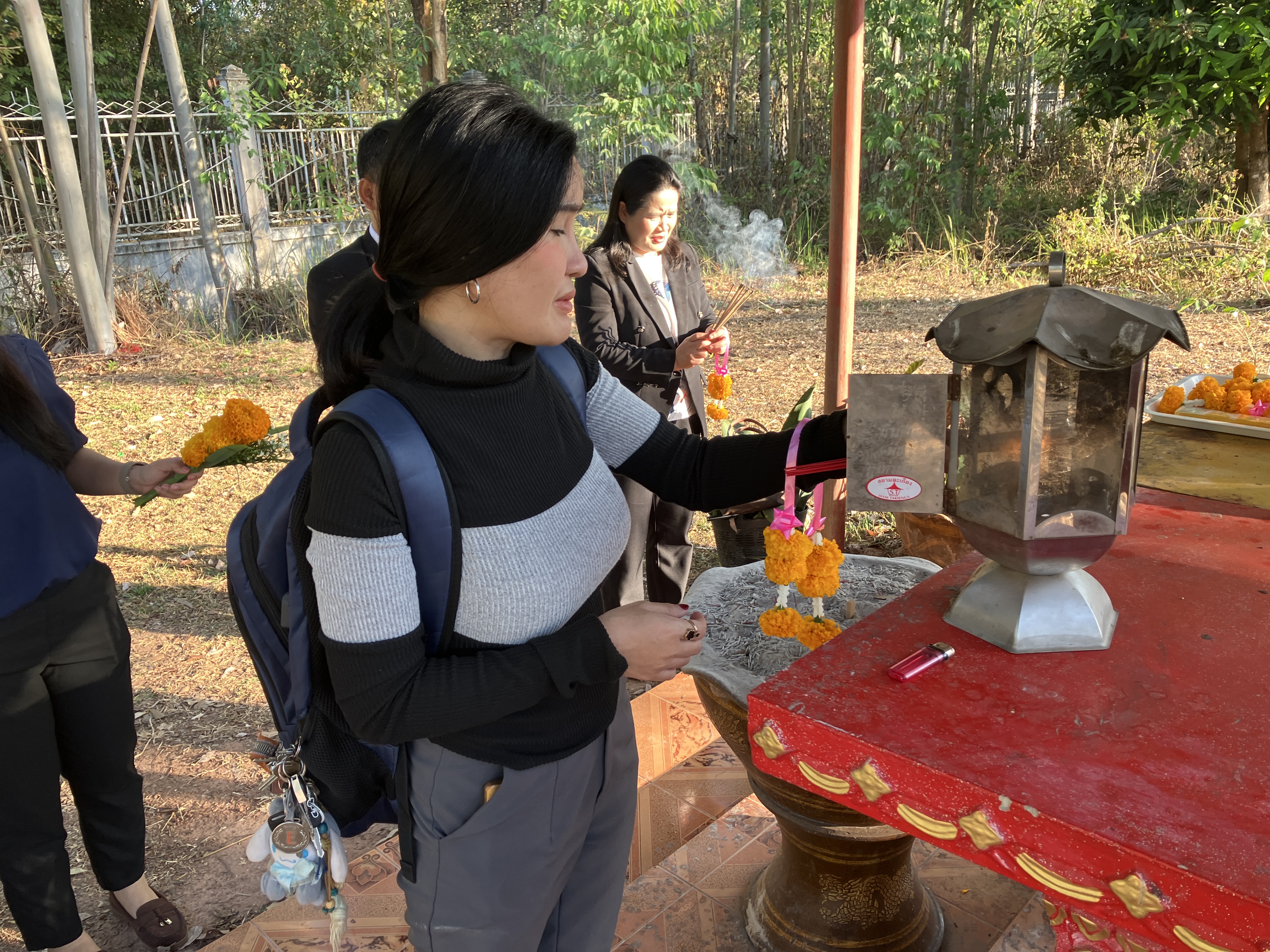 ผศ.ดร.คมศักดิ์ หารไชย ผู้อำนวยการสถาบันวิจัยและพัฒนา พร้อมคณะผู้บริหาร และบุคลากร ไหว้ศาลปู่ย่าซึ่งศาลเป็นศาลประจำเขตพื้นที่มรุกขนครขอพรเพื่อความเป็นศิริมงคล
