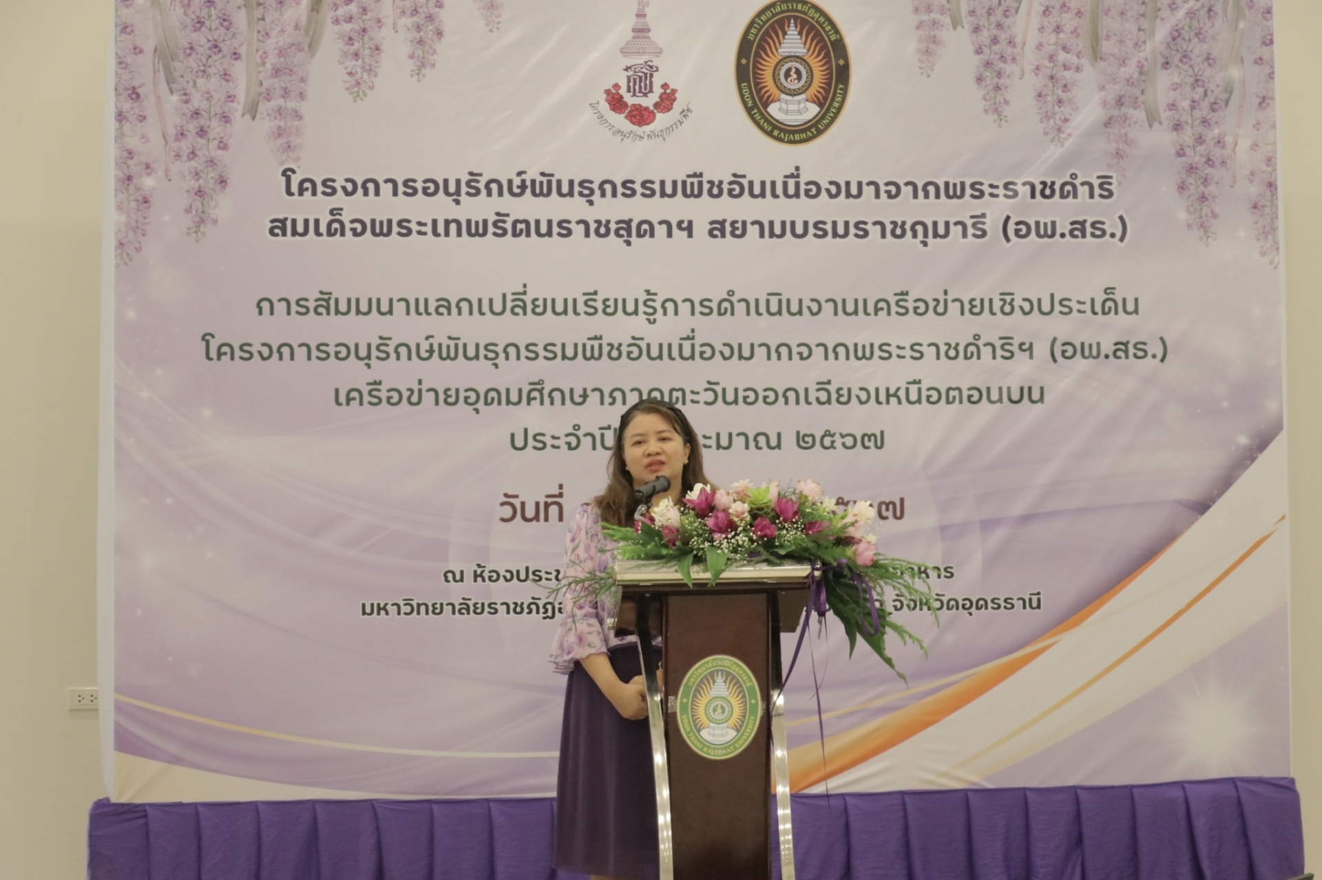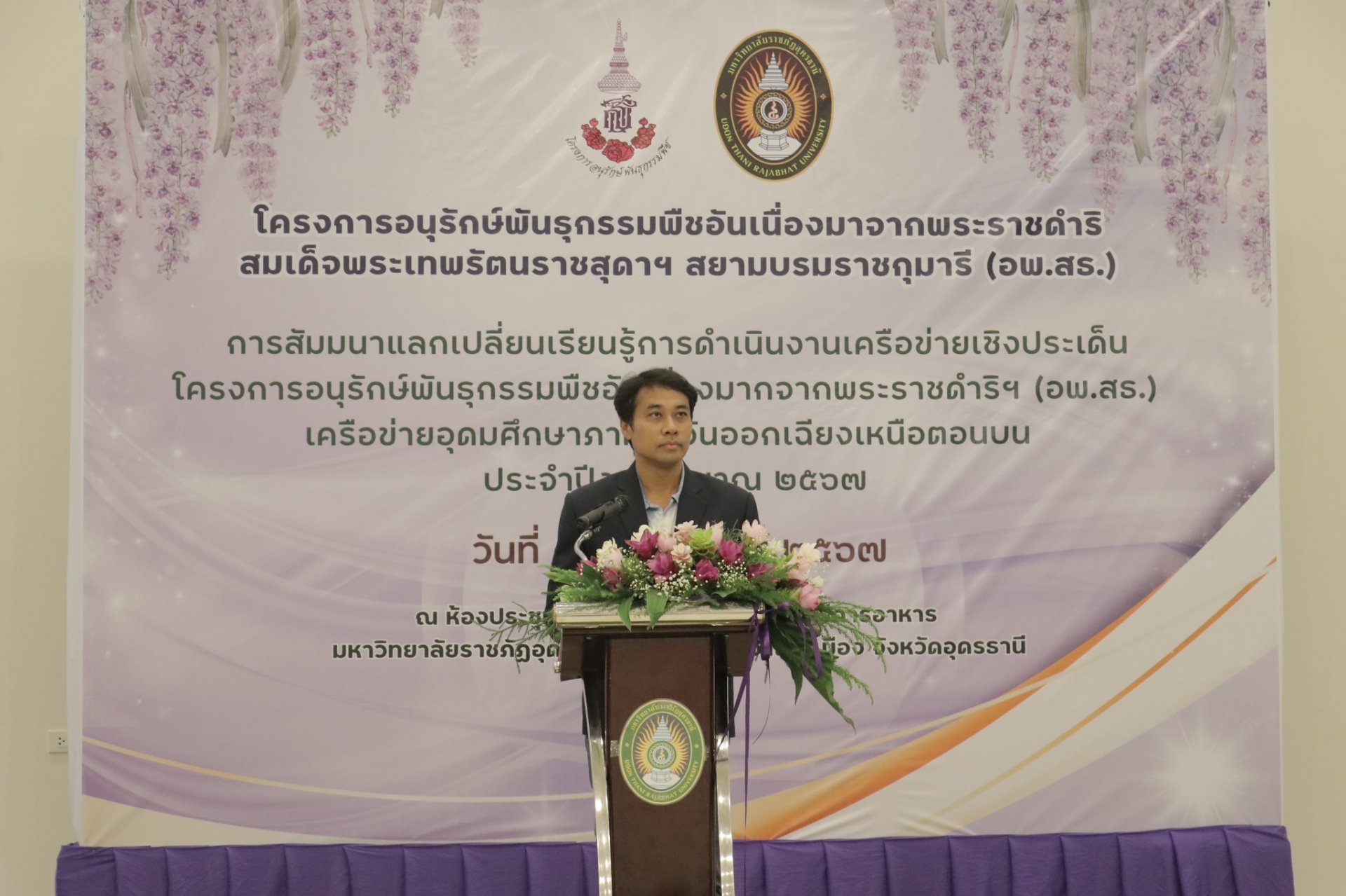 กิจกรรมสัมมนาแลกเปลี่ยนเรียนรู้การดำเนินงานเครือข่ายเชิงประเด็นโครงการอนุรักษ์พันธุกรรมพืชอันเนื่องมาจากพระราชดำริฯ (อพ.สธ.) เครือข่าย ภาคตะวันออกเฉียงเหนือตอนบน ในระหว่างวันที่ 8-9 สิงหาคม 2567 ณ มหาวิทยาลัยราชภัฏอุดรธานี จังหวัดอุดรธานี ผู้ช่วยศาสตราจารย์ ดร.กัญลยา มิขะมา ผู้อำนวยการสถาบันวิจัยและพัฒนา มอบหมายอาจารย์จรินทร โคตพรม รองผู้อำนวยการสถาบันวิจัยและพัฒนา เเละบุคลากร เข้าร่วมกิจกรรมสัมมนาแลกเปลี่ยนเรียนรู้การดำเนินงานเครือข่ายเชิงประเด็นโครงการอนุรักษ์พันธุกรรมพืชอันเนื่องมาจากพระราชดำริฯ (อพ.สธ.) เครือข่ายภาคตะวันออกเฉียงเหนือตอนบน เพื่อแลกเปลี่ยนเรียนรู้การดำเนินงานสนองพระราชดำริ ของหน่วยงานเครือข่าย ภาคตะวันออกเฉียงเหนือตอนบน จำนวน 14 สถาบัน บรรยายพิเศษ : การขับเคลื่อนการดำเนินงานสนองพระราชดำริระหว่างเครือข่ายฯ และการสนับสนุนการดำเนินงานฐานทรัพยากรท้องถิ่นและงานสวนพฤกษาศาสตร์โรงเรียนในพื้นที่เป้าหมาย โดย ดร.ปิยรัษฎ์ ปริญญาพงษ์ เจริญทรัพย์ ผู้ช่วยผู้อำนวยการ อพ.สธ. รับฟังบรรยายพิเศษ : แนวทางการประเมิน Carbon Footprint ขององค์กร โดย วิทยากรจากองค์การบริหารจัดการก๊าซเรือนกระจก และร่วมแลกเปลี่ยนเรียนรู้ ผลการดำเนินงานในการขับเคลื่อนการจัดตั้งศูนย์ประสานงาน อพ.สธ มหาวิทยาลัยนครพนม ประจำปี 2567